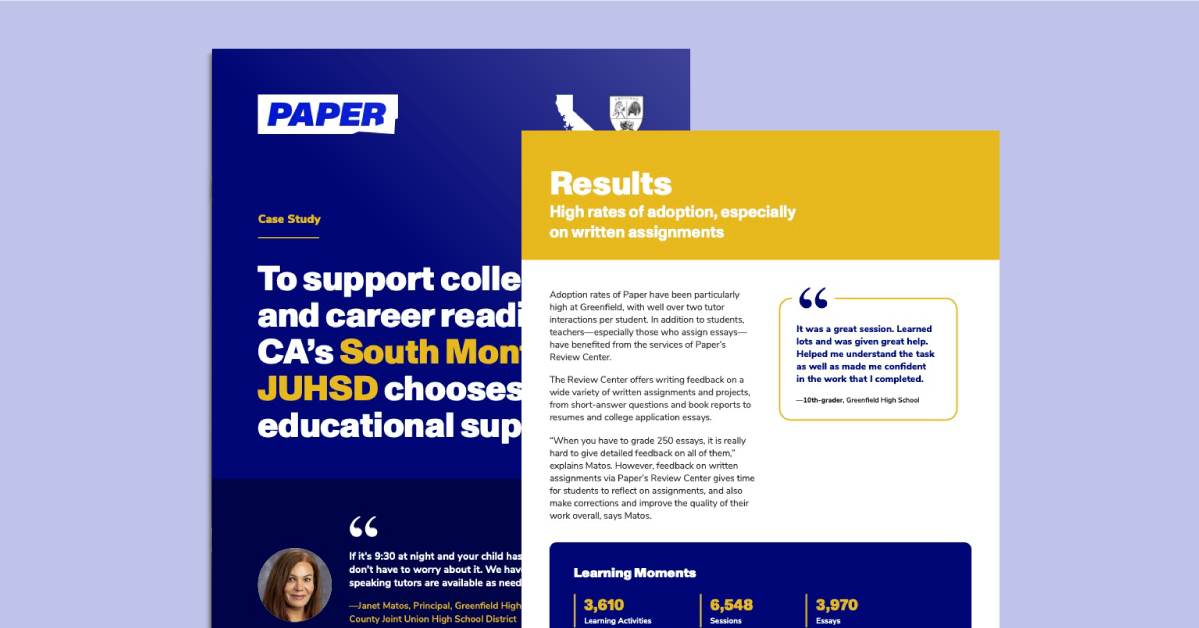 Illinois' District 99 selects Paper for equitable, high-impact tutoring